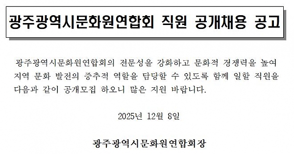 일반 [협력] 광주광역시문화원연합회 직원 공개채용 공고